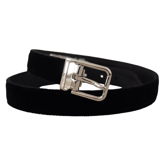 Dolce & Gabbana Black Velvet Silver Tone Metal Logo Buckle Belt