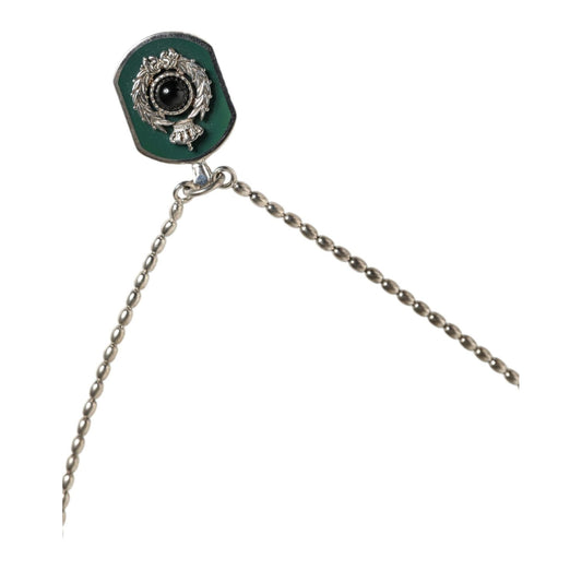 Dolce & Gabbana Sterling Silver 925 Chain Bar Gem Pendant Logo Necklace