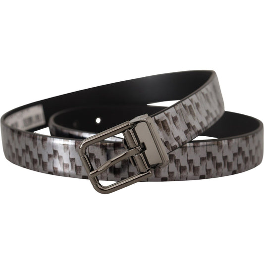 Dolce & Gabbana Gray Herringbone Leather Gray 3D Metal Buckle Belt
