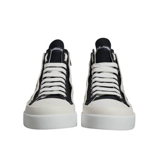 Dolce & Gabbana White Black Cotton High Top Sneakers Shoes