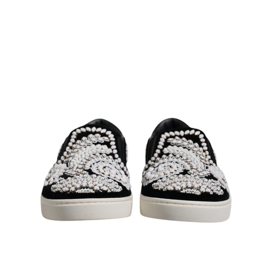 Dolce & Gabbana Black Embellished London Men Slip On Shoes