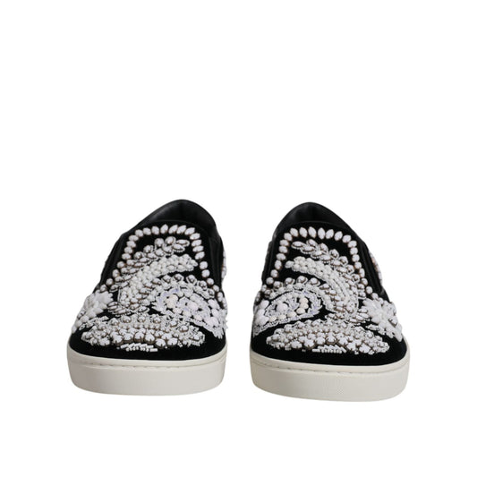 Dolce & Gabbana Black Embellished London Men Slip On Shoes