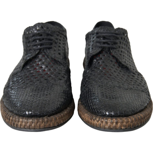 Dolce & Gabbana Black Woven Goat Leather Lace Up Derby Shoes