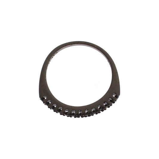 Nialaya Black CZ Rhodium 925 Silver Womens Ring