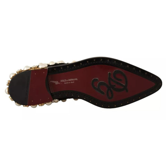 Dolce & Gabbana Black Crystal Lace Booties Stilettos Shoes