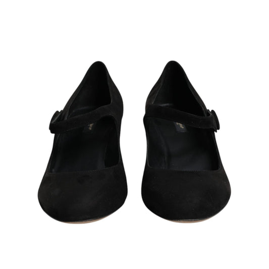 Dolce & Gabbana Black Suede Leather Block Heels Pumps Shoes