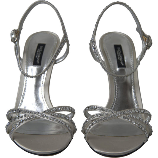 Dolce & Gabbana Silver Crystal Ankle Strap Sandals Shoes