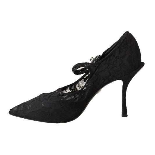 Dolce & Gabbana Black Lace Crystals Heels Mary Jane Pumps Shoes