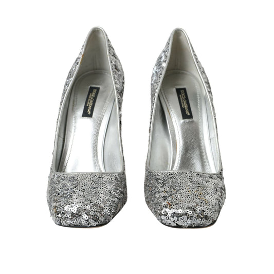 Dolce & Gabbana Silver Sequin Embellished Heels Pumps Shoes