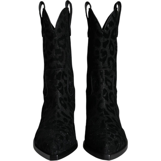 Dolce & Gabbana Black Gray Leopard Cowboy Boots Shoes