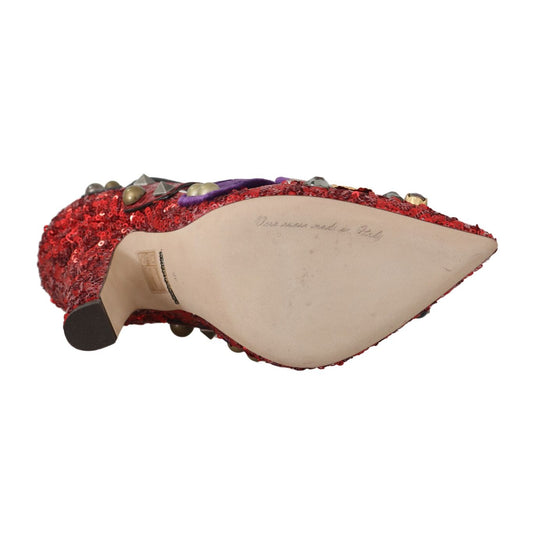 Dolce & Gabbana Red Sequined Crystal Studs Heels Shoes