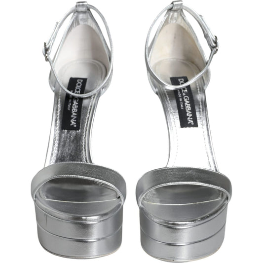 Dolce & Gabbana Silver KEIRA Heels Ankle Strap Sandals Shoes